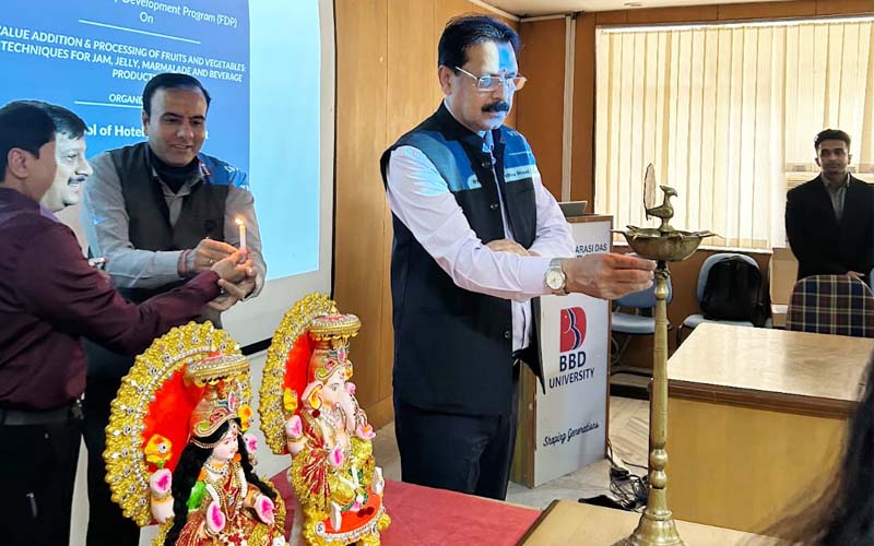 The School of Hotel Management (SoHM) in collaboration with the School of Agricultural Sciences (SoAS), BBD University, Lucknow, successfully organized a Five-Day Faculty Development Program (FDP) on “Value Addition & Processing of Fruits and Vegetables: Techniques for Jam, Jelly, Marmalade and Beverage Production” from 9–13 March 2026.